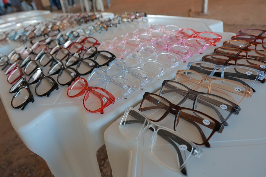 Na ação em Bonópolis, foram distribuídos 300 óculos. Em caso de hipermetropia, os pacientes escolhiam os modelos prontos na hora; nos demais casos, escolhiam a armação para montagem e entrega posteriores.