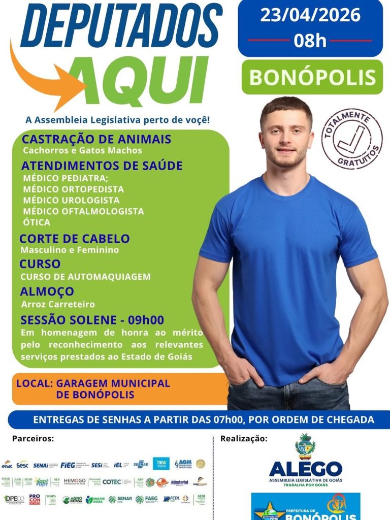 A iniciativa, promovida pela Assembleia Legislativa do Estado de Goiás em parceria com a Prefeitura de Bonópolis e apoiadores, levará uma série de atendimentos gratuitos à comunidade, facilitando o acesso a serviços essenciais.