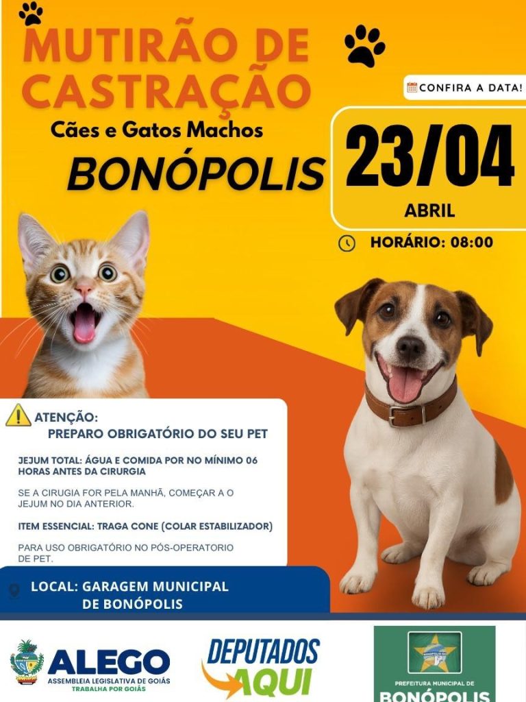 Outro destaque do evento é o mutirão de castração de cães e gatos machos, que também acontece a partir das 8 horas, no mesmo local. A ação visa contribuir para o controle populacional de animais e a saúde pública.
