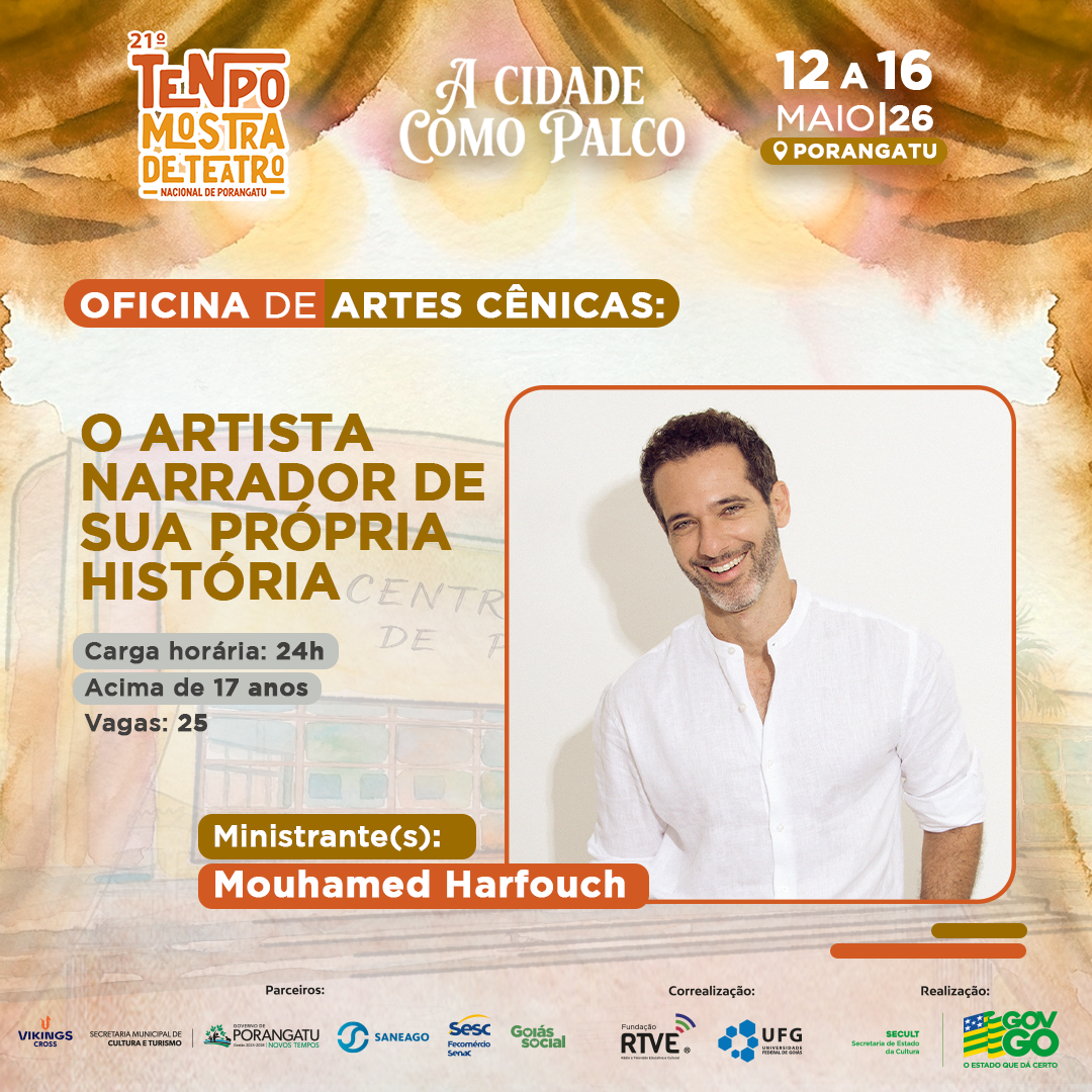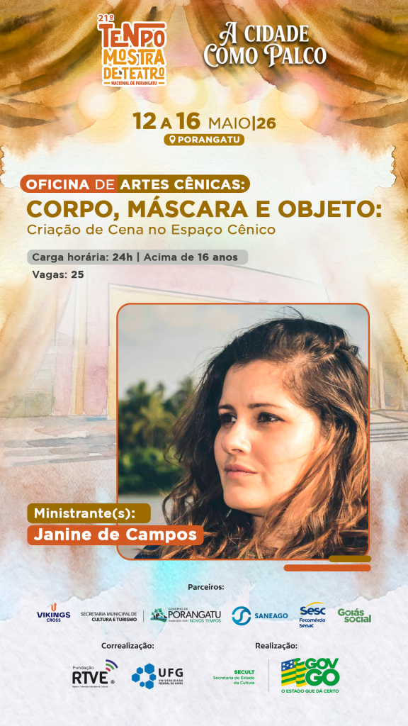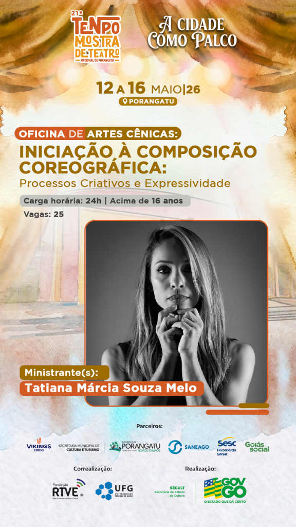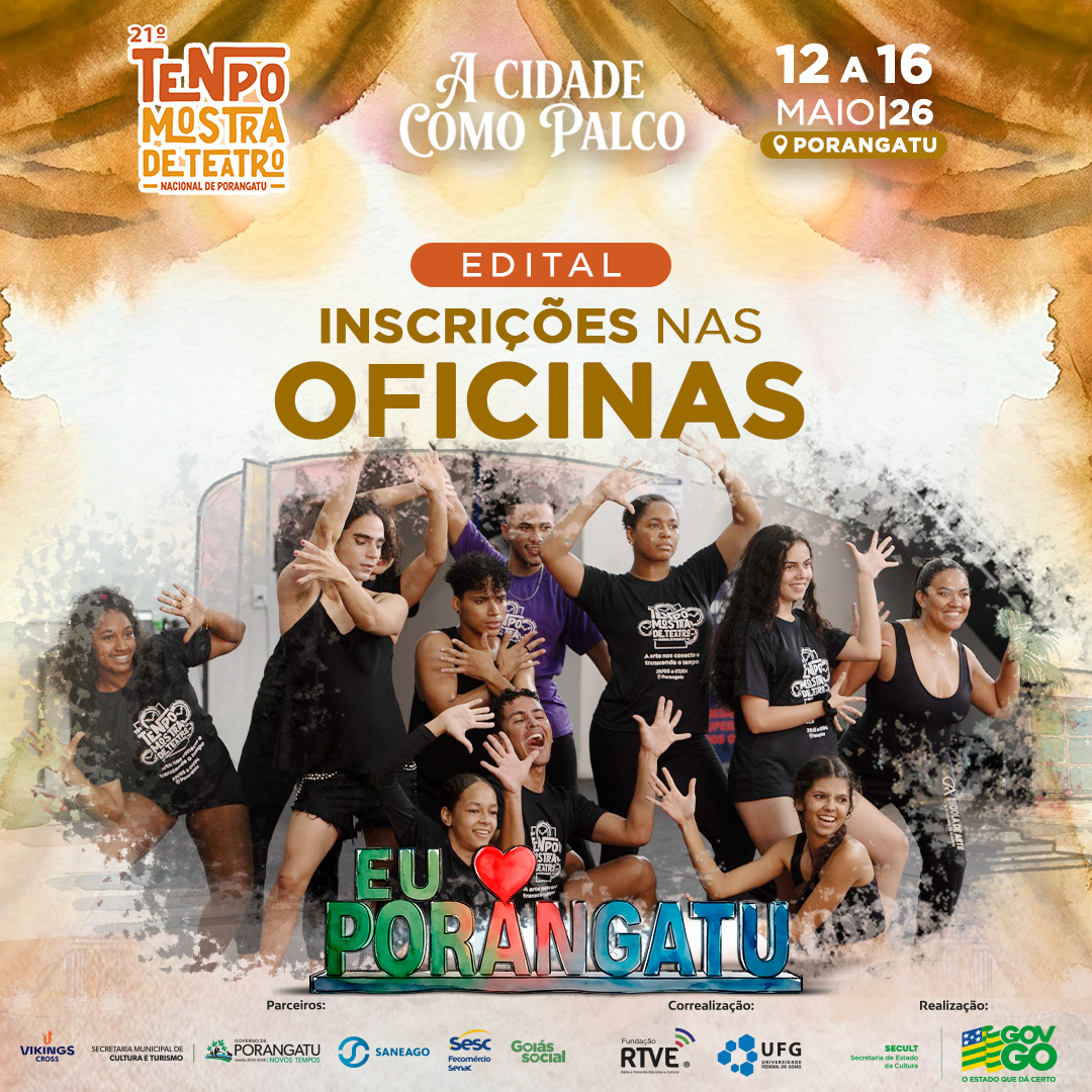 O Governo de Goiás, por meio da Secretaria de Estado da Cultura (Secult), em parceria com a Universidade Federal de Goiás (UFG) e Fundação Rádio e Televisão Educativa e Cultural (RTVE), abriu as inscrições para participantes das oficinas de artes cênicas que integram a programação da Mostra de Teatro Nacional de Porangatu (TeNpo 2026). As inscrições são gratuitas e devem ser realizadas exclusivamente pela plataforma Plateia Editais (https://mostratenpo.cultura.go.gov.br), até o dia 6 de maio de 2026, às 17h.