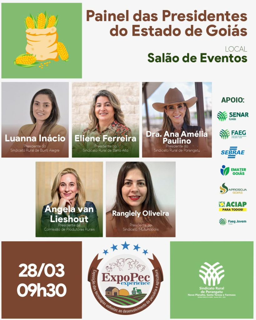 Entre os destaques da programação está o “Painel das Presidentes do Estado de Goiás”, que acontecerá no dia 28 de março, às 9h30, no Salão de Eventos. O encontro reunirá mulheres que lideram sindicatos e movimentos do agro goiano, promovendo um debate sobre liderança feminina, desafios do setor e as oportunidades no cenário atual.