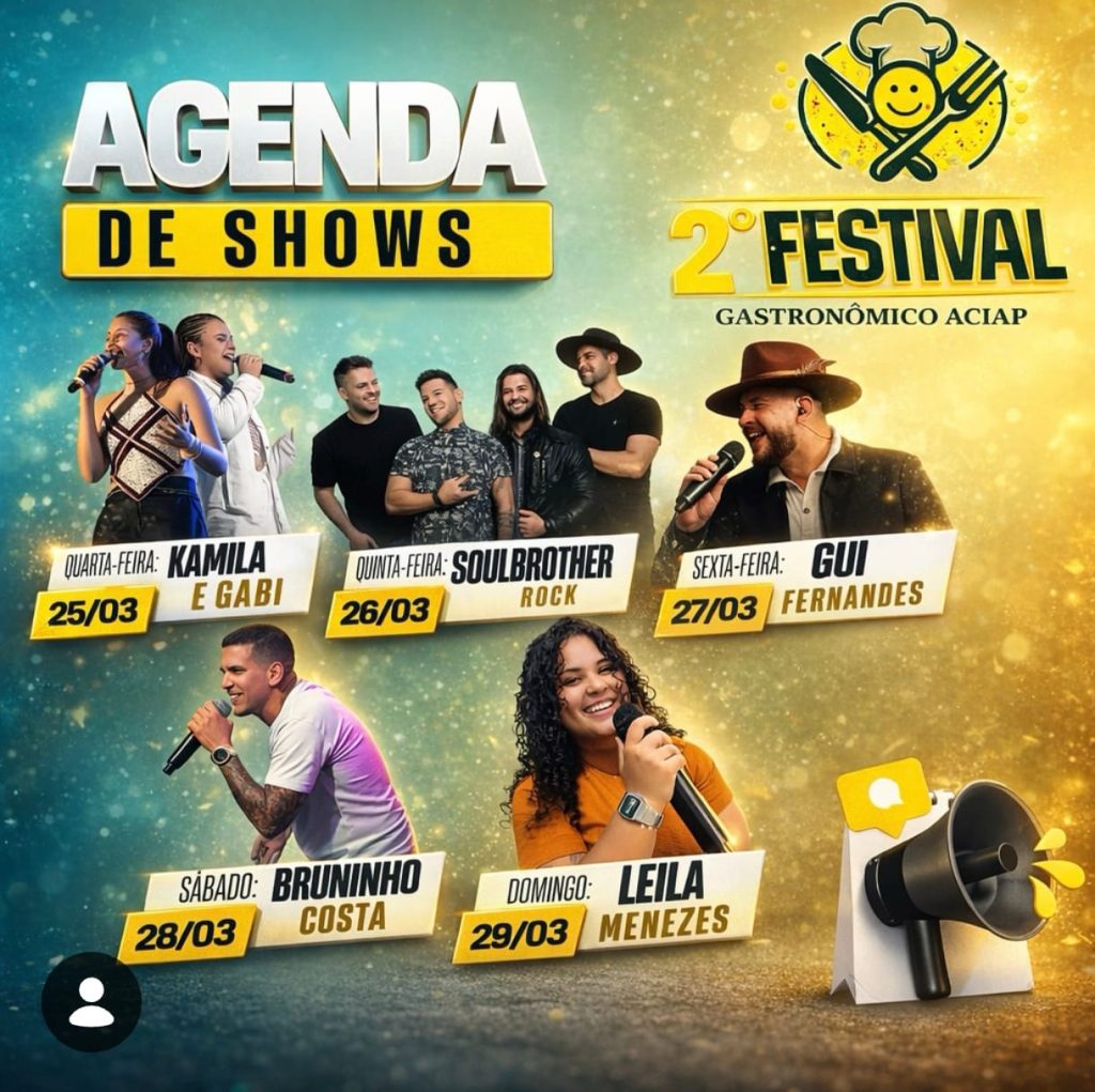Prepare-se para viver dias incríveis com muita música e gastronomia: O 2º Festival Gastronômico ACIAP já está chegando e a nossa agenda de shows já está no ar!