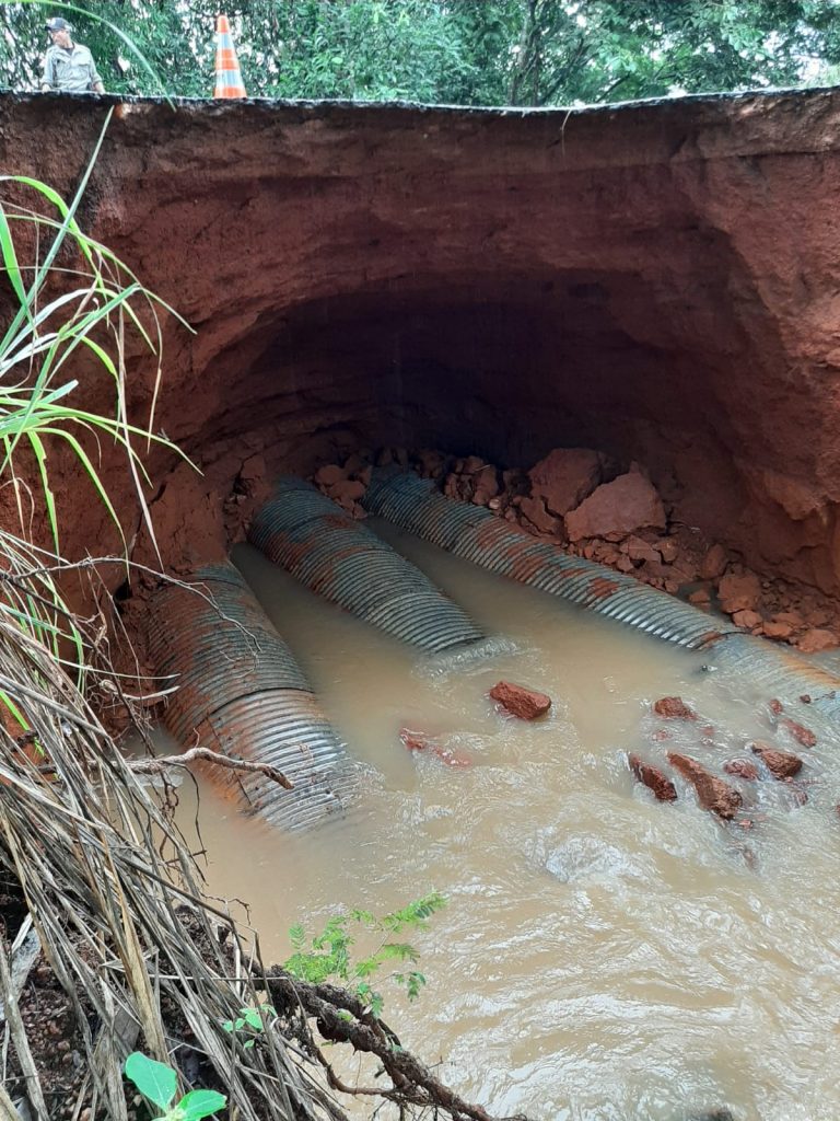 De acordo com o Capitão Farias da PRE, a ponte cedeu ainda mais e quem vier no sentido de Santa Tereza de Goiás para Minaçu e vice-versa, deve buscar alternativas.