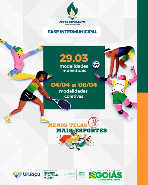 A Secretaria de Estado da Educação de Goiás (SEDUC), por meio da Coordenação Regional de Educação e em parceria com a Superintendência de Desporto Educacional, realizará a fase intermunicipal dos Jogos Estudantis do Estado de Goiás 2025.