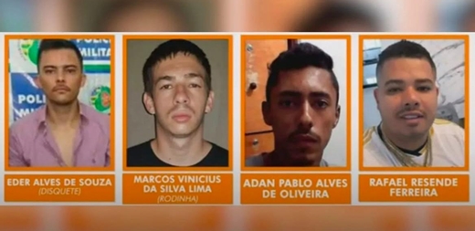 - Eder Alves de Souza; de 37 anos. Ele tem passagem por roubo e porte ilegal de arma de fogo. Um dos crimes cometidos por ele em Goiás aconteceu em 2017 quando ele e outros três comparsas assaltaram um hotel em Caldas Novas, com armas de grosso calibre. Eles roubaram mais de R$10.000, além de celulares de funcionários. O carro e o armamento usados no crime foram encontrados em Goiânia; entre eles coletes e um fuzil. A quadrilha de Éder já era procurada por explosão de caixas eletrônicos em cidades no interior do Estado. Ele foi condenado em junho desse ano por roubo.